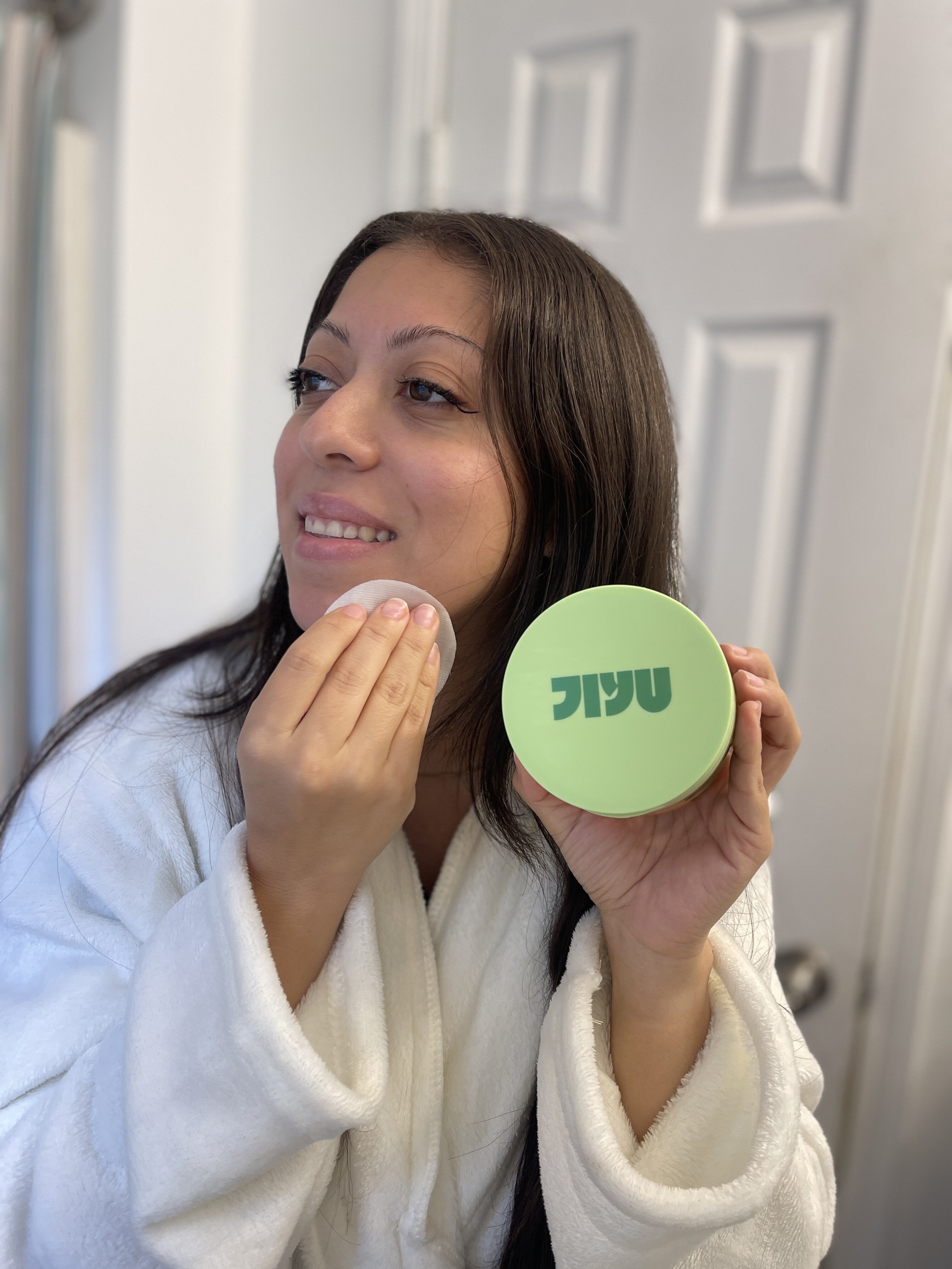 "I started using the Jiyu Toner Pads a few weeks ago and my skin already feels softer and more hydrated. The pads are super gentle and they leave my face feeling clean and refreshed. I’ve noticed my skin tone looks more even and some of my dark spots are fading slowly." -Emi